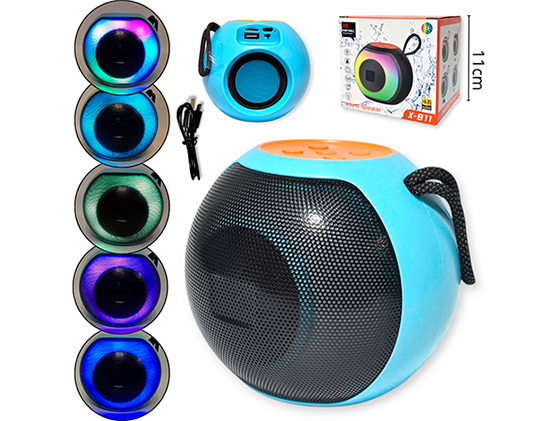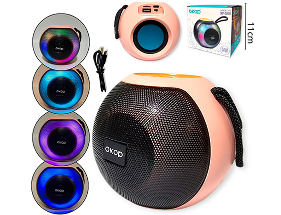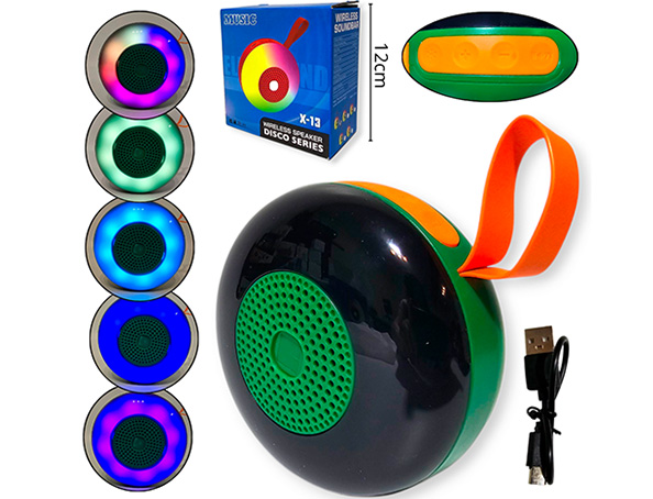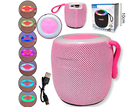 14-ELECTRONICA ALTAVOZ BLUETOOTH REDONDO PLASTICO CARGA USB LUZ |