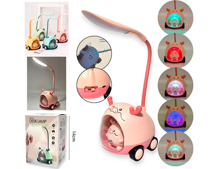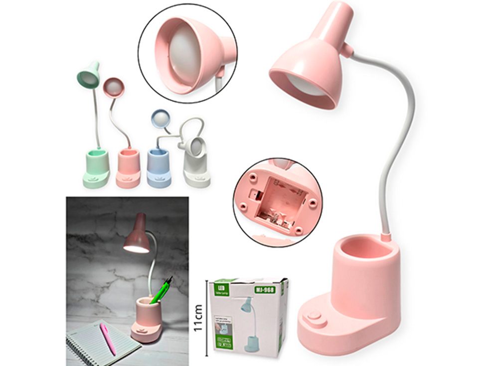 14-ELECTRONICA VELADOR LAMPARA DE ESCRITORIO PLASTICO A PILA C/ PORTA LAPICES VARIOS COLORES |