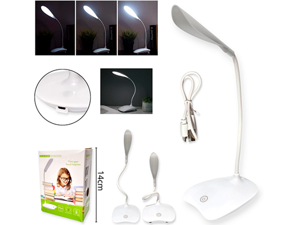 14-ELECTRONICA VELADOR LAMPARA DE ESCRITORIO PLASTICO CARGA USB BLANCO |