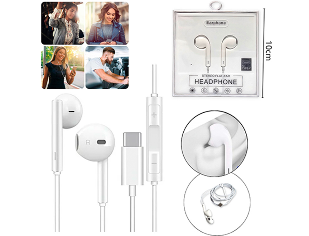 14-ELECTRONICA ELECT. AURICULAR CON CABLE TIPO C MANOS LIBRES BLANCO |