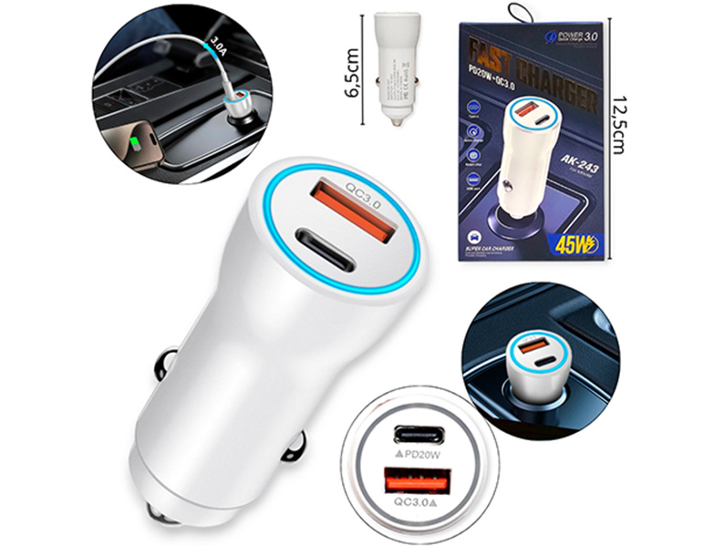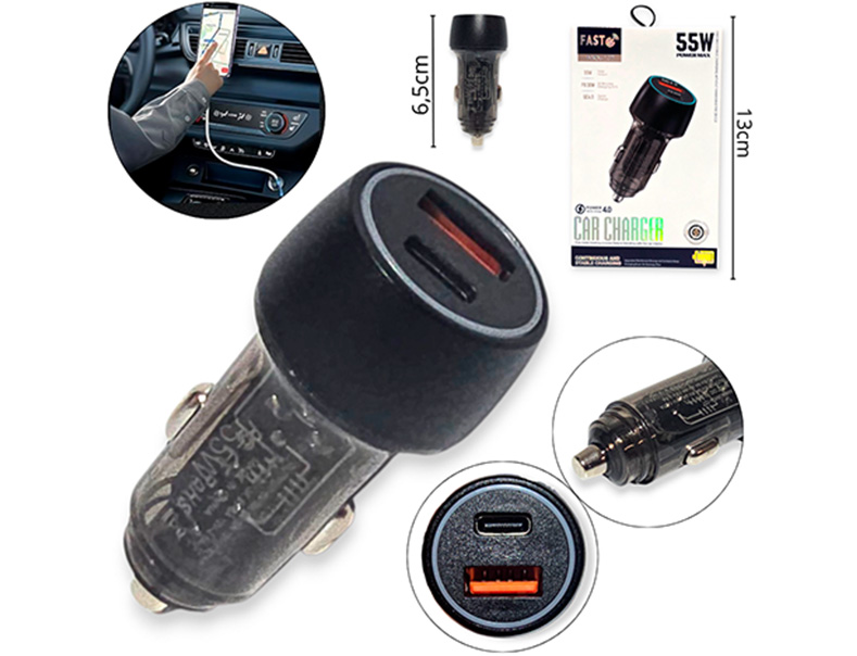 14-ELECTRONICA ELECT. CARGADOR PARA AUTO PLASTICO 55W EN CAJA |