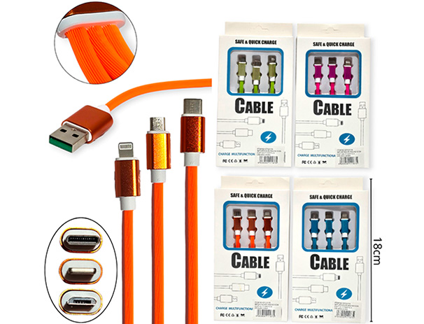 14-ELECTRONICA ELECT. CABLE DE DATOS 3 EN 1 VARIOS COLORES |