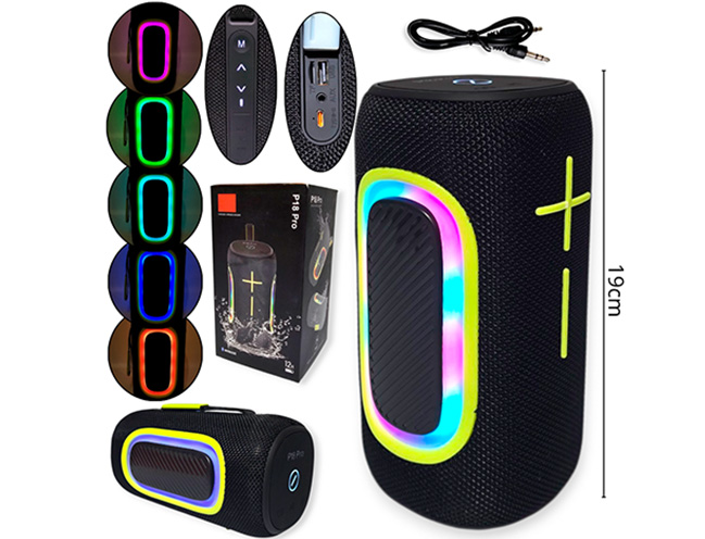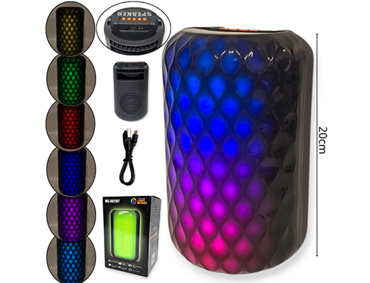 14-ELECTRONICA ALTAVOZ CARGA USB CON LUCES IMPERMEABLE 19CM |