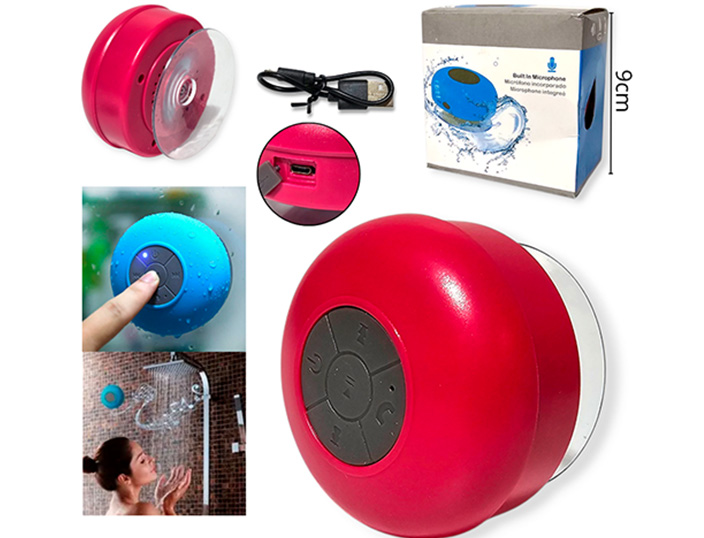 14-ELECTRONICA ALTAVOZ CON VENTOSA RESISTE AL AGUA COL. CARGA USB |