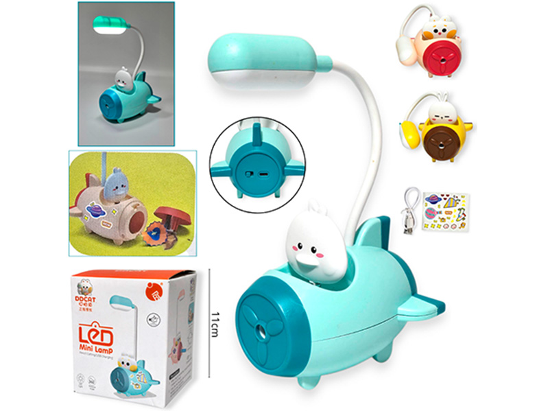 14-ELECTRONICA VELADOR LED RECARGABLE USB AVION LAPICERO + SACA PUNTAS 3 COLORES |