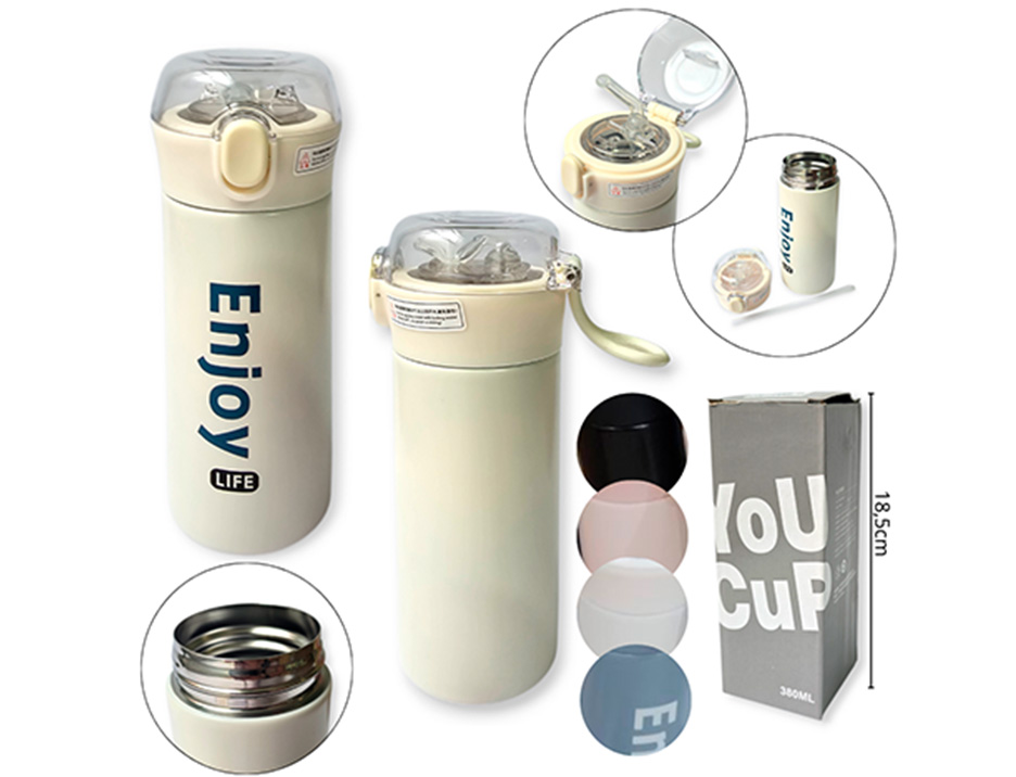 02-INGRESO ACERO Y COPAS BOTELLA TERMICA DOBLE ACERO 304 380ML 4 DISEÑOS |