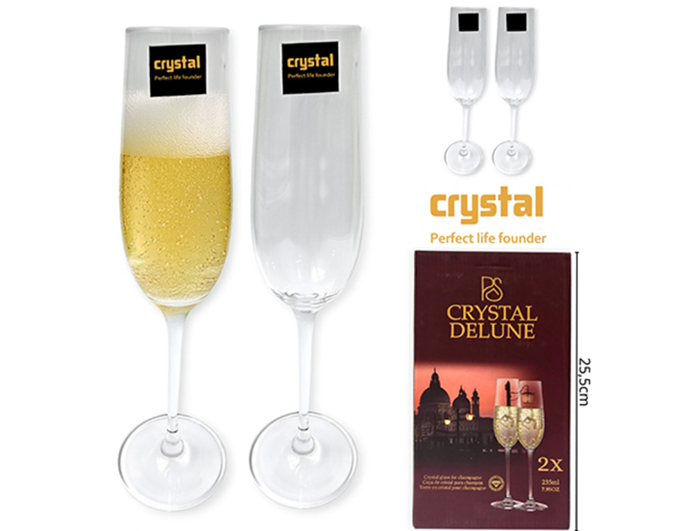 02-INGRESO ACERO Y COPAS COPA CRISTAL CHAMPAGNE X2 235ML CAJA REGALO |