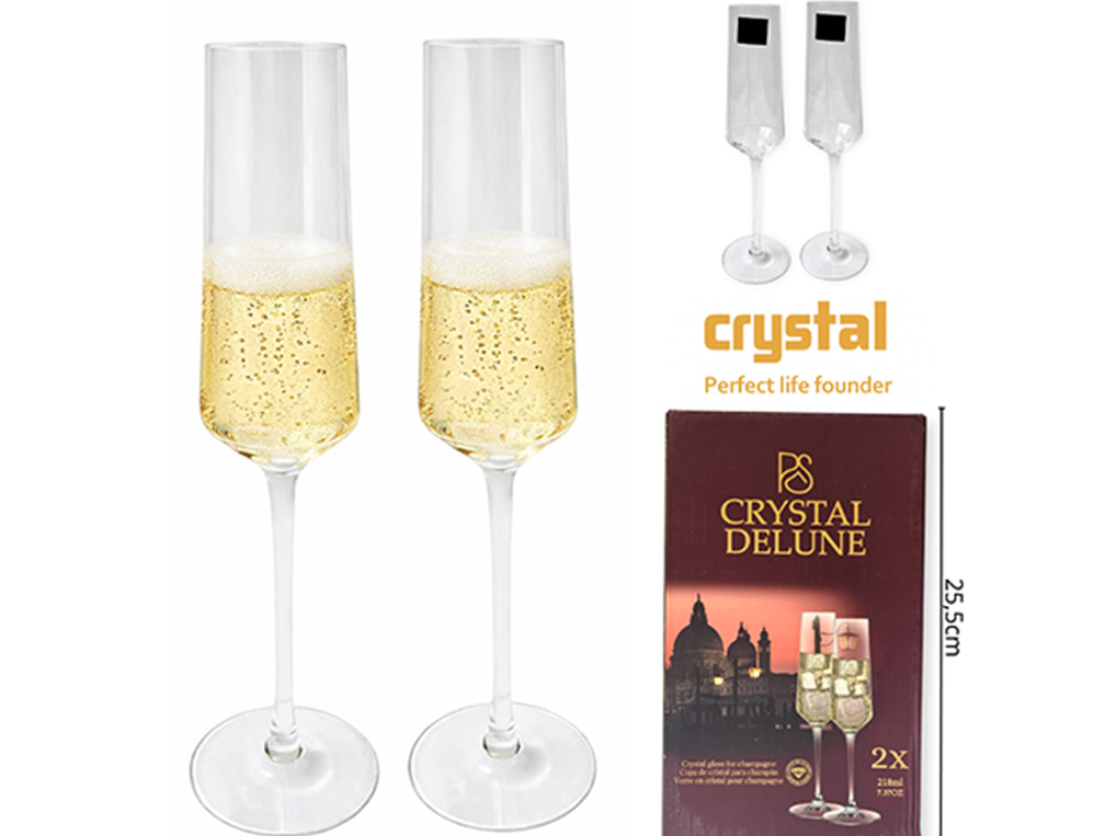 02-INGRESO ACERO Y COPAS COPA CRISTAL CHAMPAGNE X2 218ML CAJA REGALO |