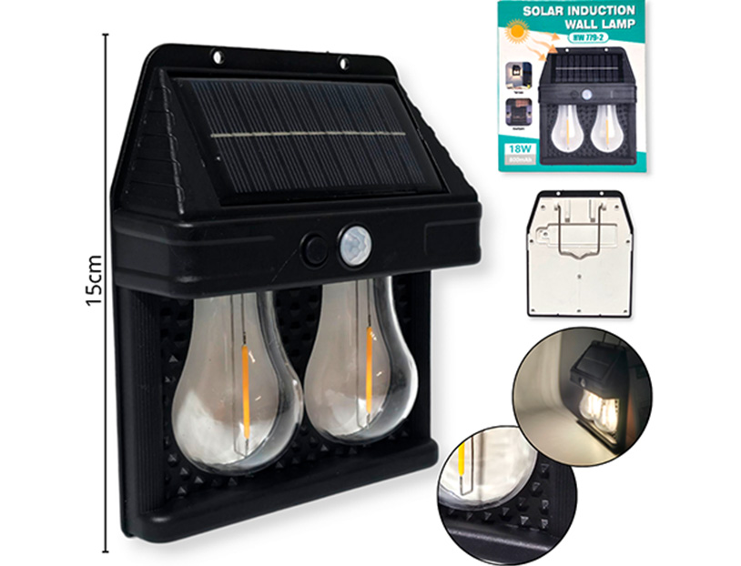 15-FERRETERIA/ LINTERNAS FAROL DE INDUCCION SOLAR PLASTICO 15CM 2 FOCOS |
