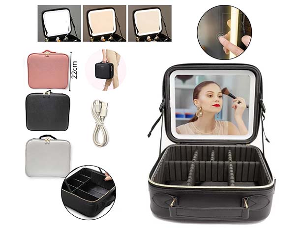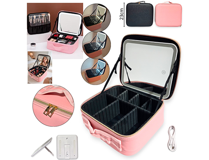 07-BILLETERAS/ MARROQUIN ESTUCHE NECESER CON ESPEJO LUZ LED 10X25X23CM 3 COLORES |