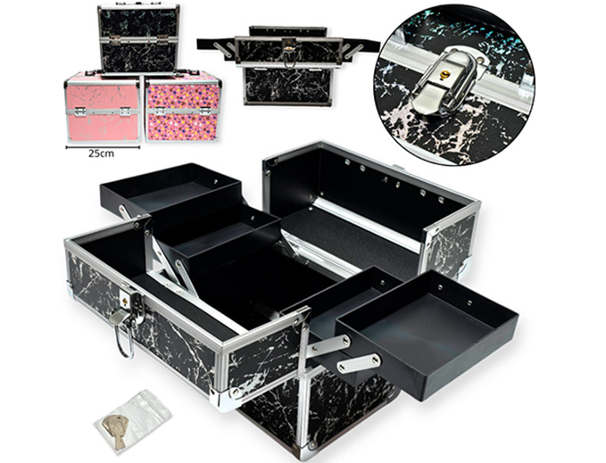 07-BILLETERAS/ MARROQUIN EST PORTA COSMETIC C/ LLAVE EXTENSIB 25X21CM BRILLOS 3 COLORES |